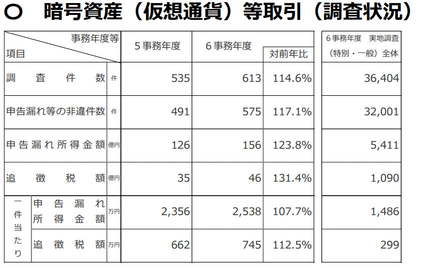 つまり、暗号資産(仮想通貨)は依然として国税庁の重点調査項目であり、手綱が緩められる様子は全くありません。